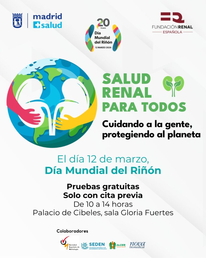 Con motivo del Día Mundial del Riñón, el próximo 12 de marzo, la Fundación Renal Española, en colaboración con el Ayuntamiento de Madrid y Madrid Salud, realizará pruebas gratuitas de detección precoz de la enfermedad renal para valorar la salud renal de la población general.